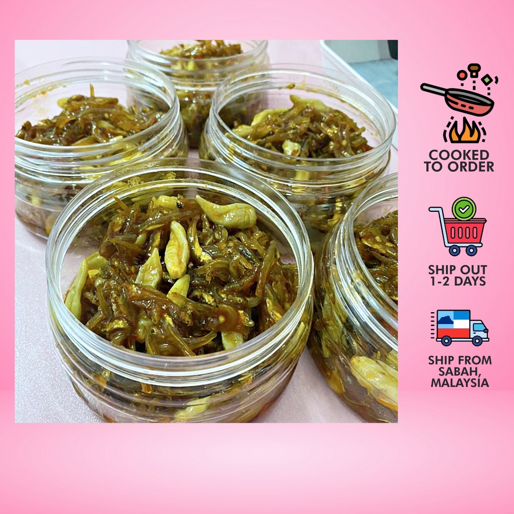 100g ikan masin ( potong dadu) 200g lada putih sabah (biarkan 1 biji) 1 biji bawang merah 2.5cm belacan (boleh ada.